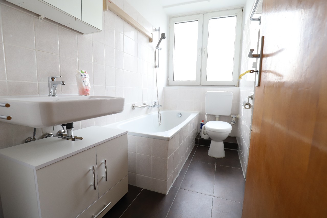 - Badausstattung: Badewanne, Fenster