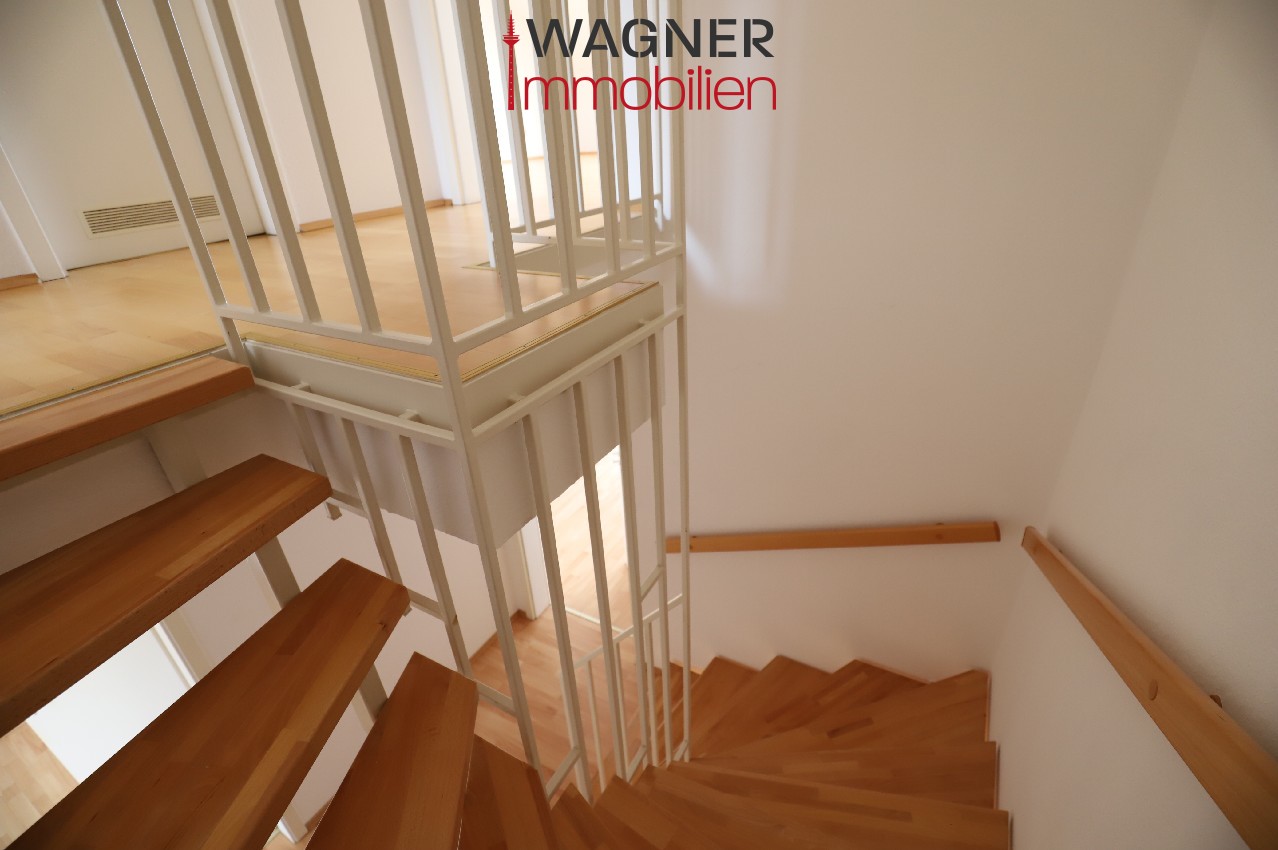 Über eine Echtholz-Treppe kommen Sie in das 1.Obergschoss, hier befindet sich das ein großes Schlafzimmer mit begehbarer Ankleide und der ruhige West-Balkon. Ein Tageslichtbad mit Dusche und Wanne sowie ein Arbeitszimmer gehören ebenso zu dieser Etage.