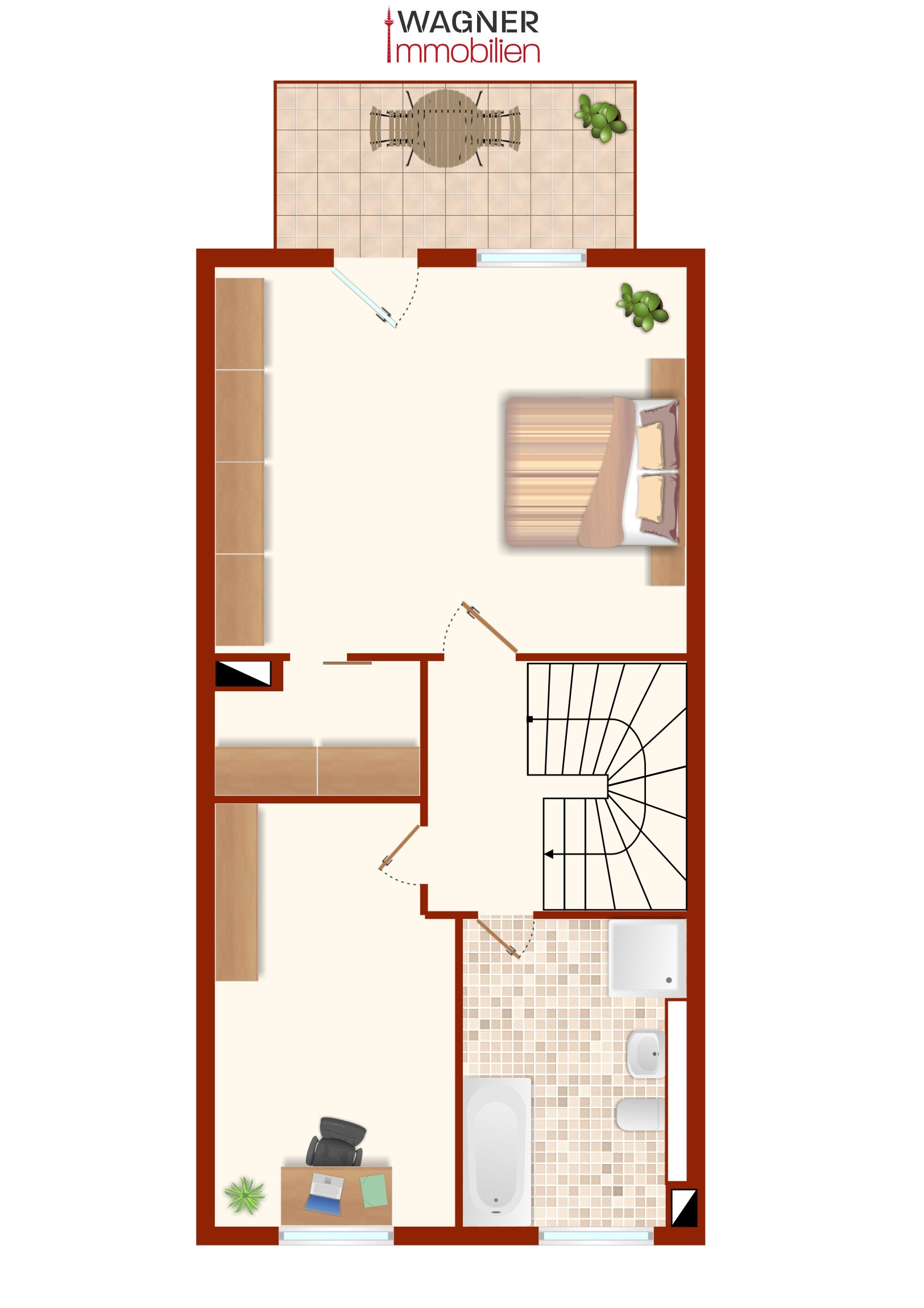 Setzen Sie sich ganz einfach und unverbindlich mit uns in Verbindung. Gern beraten wir Sie in einem kostenlosen Informationsgespräch. Ein Anruf genügt. Auch über eine Kurznachricht freuen wir uns. Telefon 069 – 95 15 74 80 bzw. info@wagner-immobilienprofi.de- Immobilie ist verfügbar ab: nach Absprache