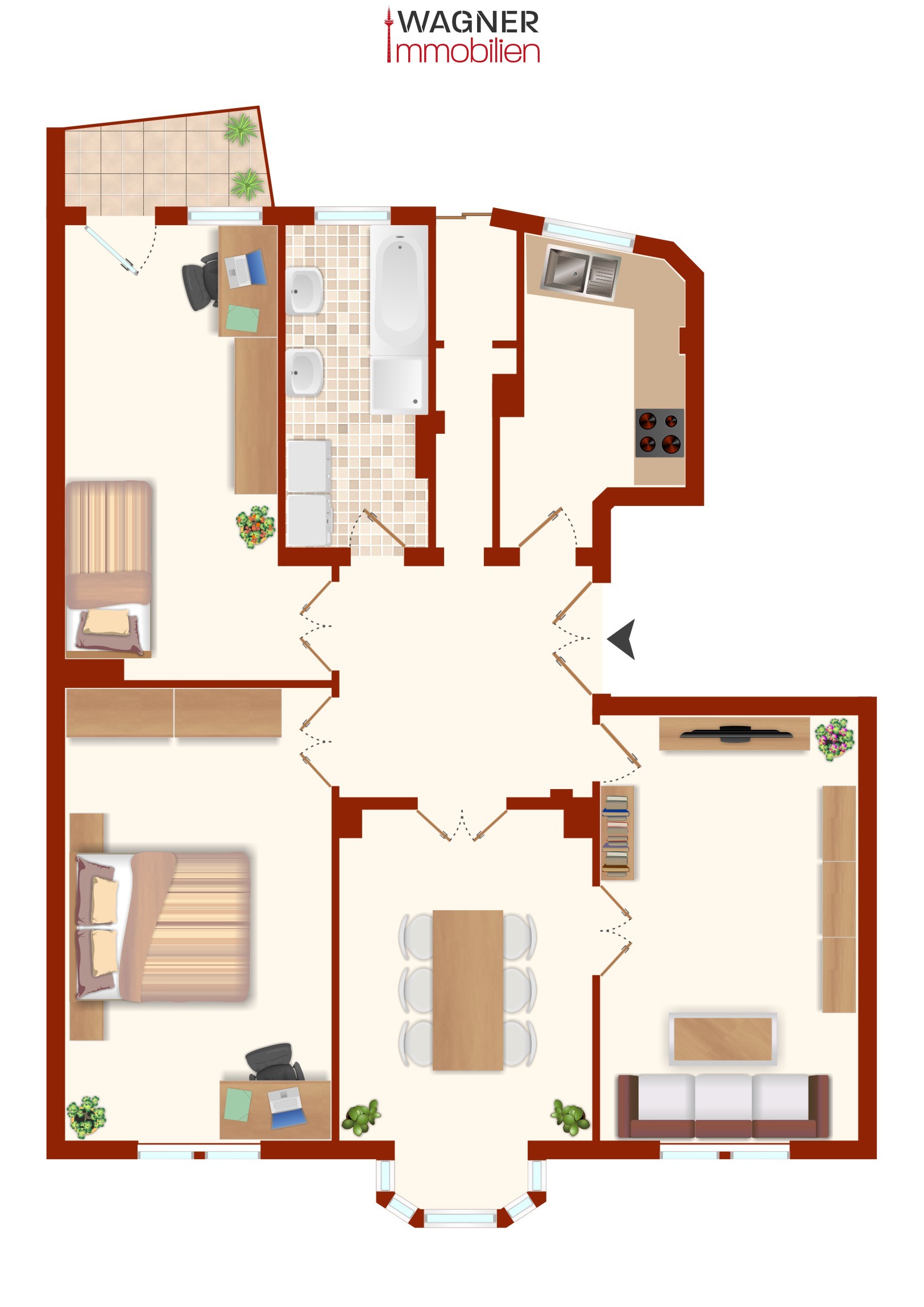 Vorsorglich weisen wir darauf hin, dass die von uns weitergegebenen Objektinformationen, Unterlagen, Pläne usw. vom Eigentümer stammen. m²-Angaben sind ca.-Werte. In den Plänen eingezeichnete Einrichtungen dienen lediglich als Möblierungsvorschläge, wenn nicht anders angegeben. Eine Haftung für die Richtigkeit oder Vollständigkeit der Angaben übernehmen wir nicht. Es obliegt dem Interessenten, die darin enthaltenen Objektinformationen und Angaben auf ihre Richtigkeit hin zu überprüfen. Alle Immobilienangebote sind freibleibend und vorbehaltlich Irrtümer, Zwischenverkauf- und Vermietung oder sonstiger Zwischenverwertung. Eingezeichnete